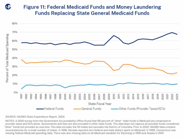 Figure 3 adapted from Figure 11 in Paragon Health Institute, “Medicaid Money Laundering: Understanding State Financing Gimmicks,” April 2025. Available at: https://paragoninstitute.org/report/medicaid-money-laundering